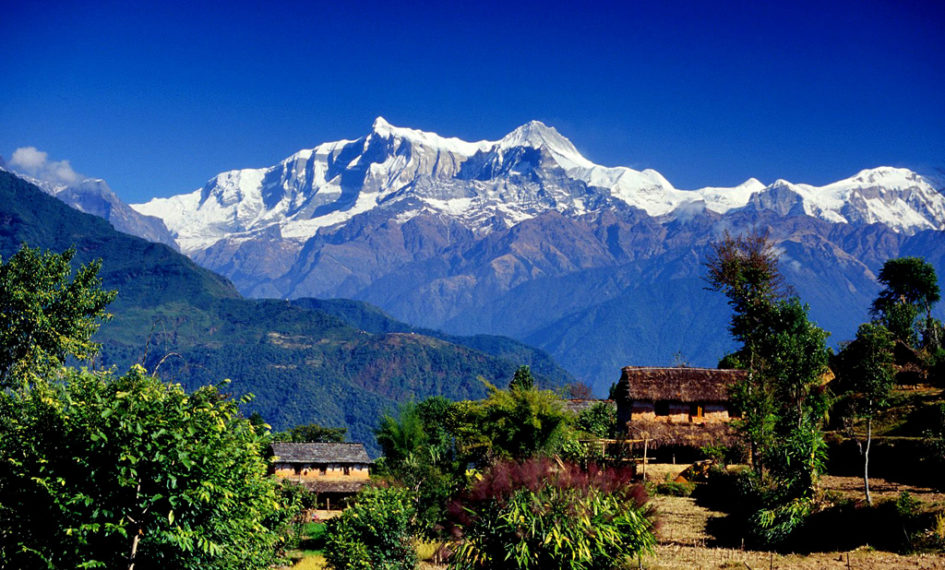 - A Georgios view of Annapurna Himalaya range with greenery landscape.